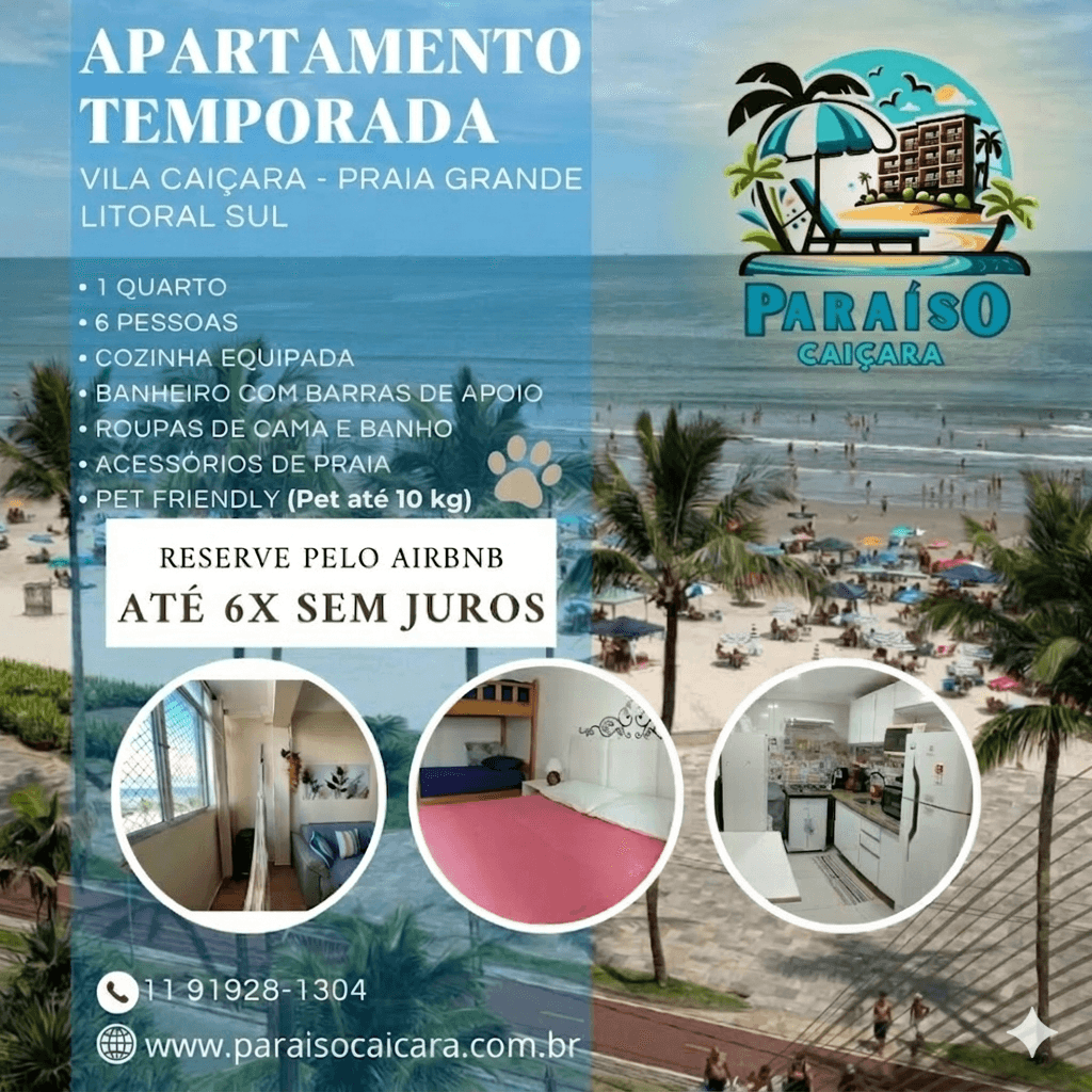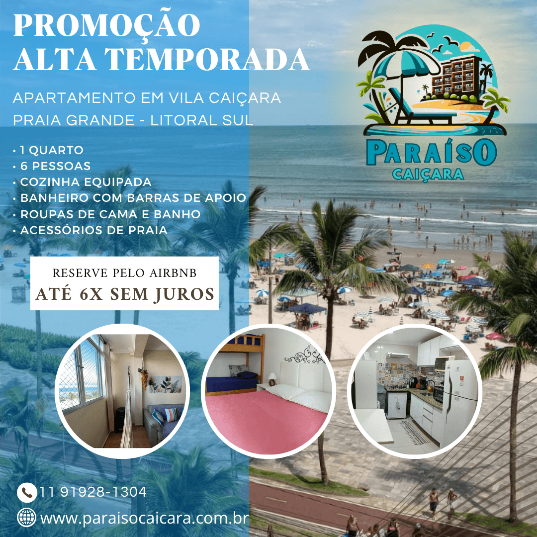 No Paraíso Caiçara, cada detalhe foi cuidadosamente pensado para proporcionar uma experiência única de conforto e tranquilidade em frente ao mar. Localizado na Praia Caiçara, este apartamento combina charme, funcionalidade e uma vista deslumbrante, tornando-se o lugar ideal para relaxar, criar memórias inesquecíveis e explorar as belezas da região.